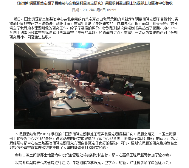 《新增和調(diào)整預(yù)算定額子目編制與實(shí)物消耗量測定研究》課題順利通過國土資源部土地整治中心驗(yàn)收