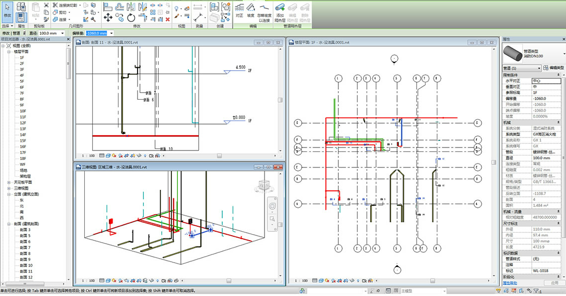 各專業(yè)管線的位置、標(biāo)高、連接方式及施工工藝先后進行三維模擬,按照現(xiàn)場可能發(fā)生的工作面和碰撞點進行方案的調(diào)整,實現(xiàn)方案的可施工性。