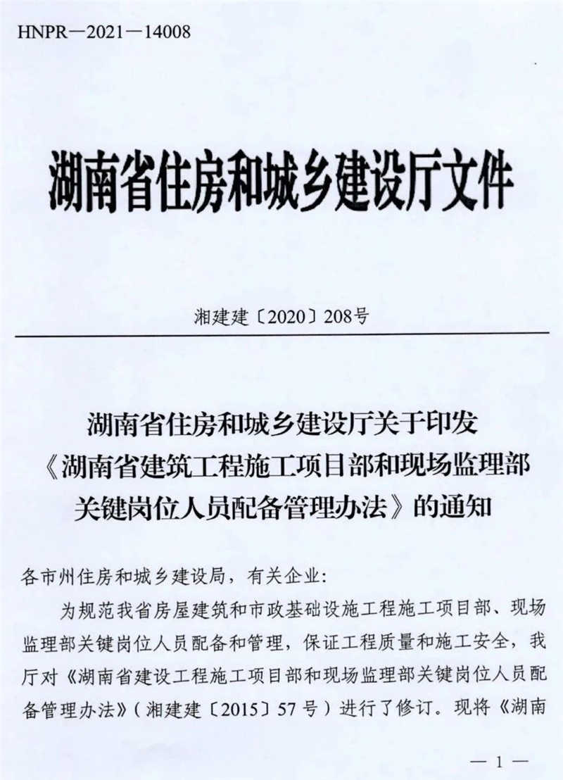 《湖南省建筑工程施工項(xiàng)目部和現(xiàn)場(chǎng)監(jiān)理部關(guān)鍵崗位人員配備管理辦法》