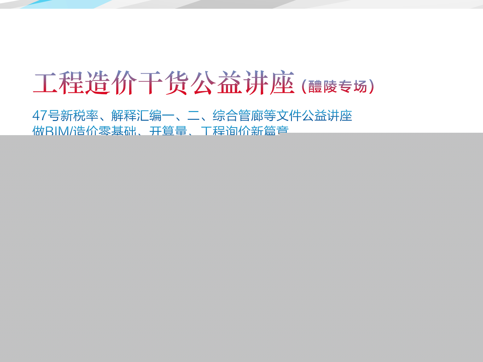 1.解讀《47號(hào)新稅率、解釋匯編一、二、綜合管廊》等相關(guān)文件和疑難問(wèn)題,現(xiàn)場(chǎng)講解從廣大造價(jià)人員收集過(guò)來(lái)的問(wèn)題。(約120分鐘)2.算量軟件的運(yùn)用價(jià)值( 約15分鐘)