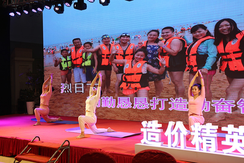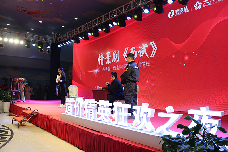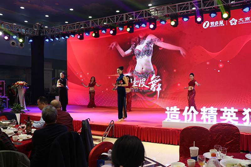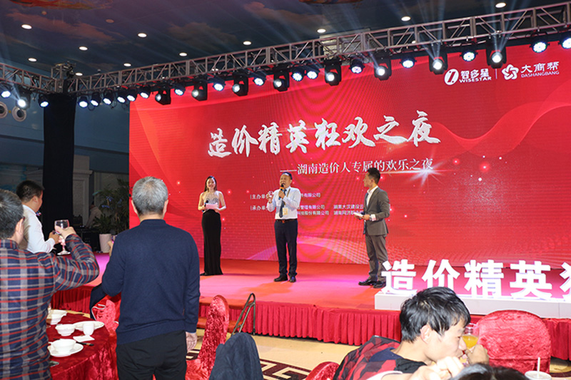 在最后的環(huán)節(jié),全體嘉賓都站立起來,打開手機電筒,用光照亮了整個宴會廳,與臺上演員一起互動歌唱,忘乎所以地狂歡。生活并不容易,人生需要歡樂,能讓造價人生活輕松起來、人生快樂起來,也是智多星的服務(wù)內(nèi)容。