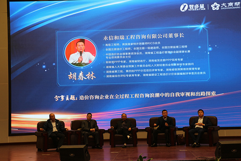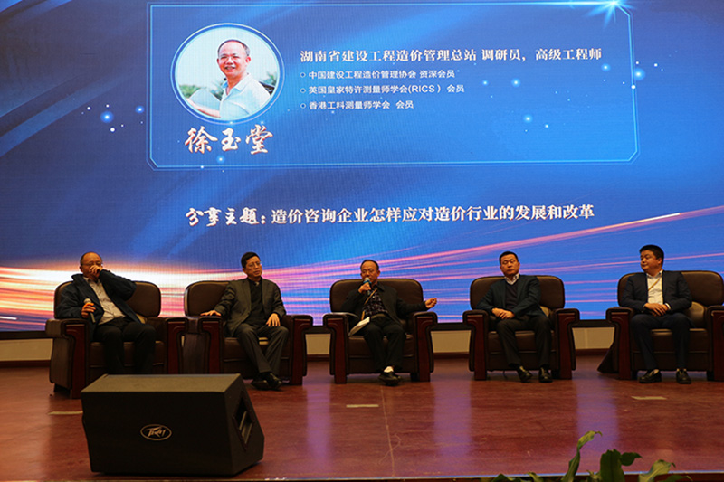 接下來的“大咖高峰論壇”環(huán)節(jié),將此次活動再次推向了新的高潮。湖南省建設(shè)工程造價管理總站調(diào)研員 徐玉堂 先生、湖南新星項目管理有限公司董事長 羅國基 先生、永信和瑞工程咨詢有限公司董事長 胡春林 先生、湘軍咨詢集團總裁張軍先生作為嘉賓出席,任己任先生為論壇主持人。